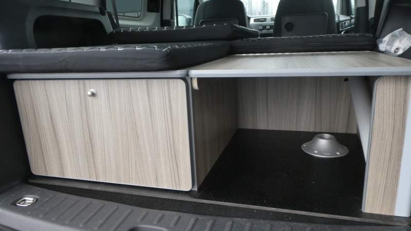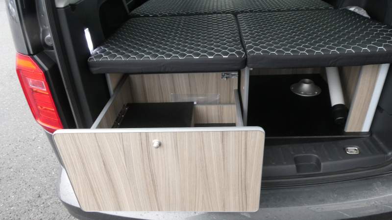 En vanlig minibuss med fem säten utrustad med en skräddarsydd modul "Outback Camper kit" enhet som erbjuder bekväma sitt- och sov möjligheter för två personer. Fordonet kan konverteras från en vanlig personbil för fem personer till fullt camping läge inom några minuter.
